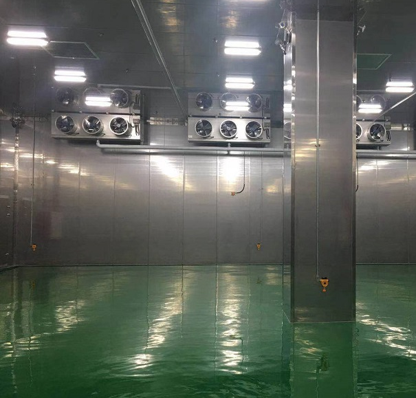 3、制冷系統(tǒng)選用熱氟融霜型箱式活塞制冷機(jī)組,德國比澤爾品牌壓縮機(jī),熱氟融霜型冷風(fēng)機(jī)(不銹鋼外殼、防爆電機(jī)、底盤防爆加熱膜),丹弗斯品牌管道,R404a制冷劑;