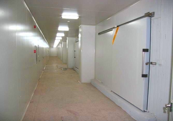 1、2500立方制冷機組冷庫多由制冷機制冷,利用氣化溫度很低的液體(氨或氟里昂)作為冷卻劑,使其在低壓和機械控制的條件下蒸發,吸收貯藏庫內的熱量,從而達到冷卻降溫的目的。